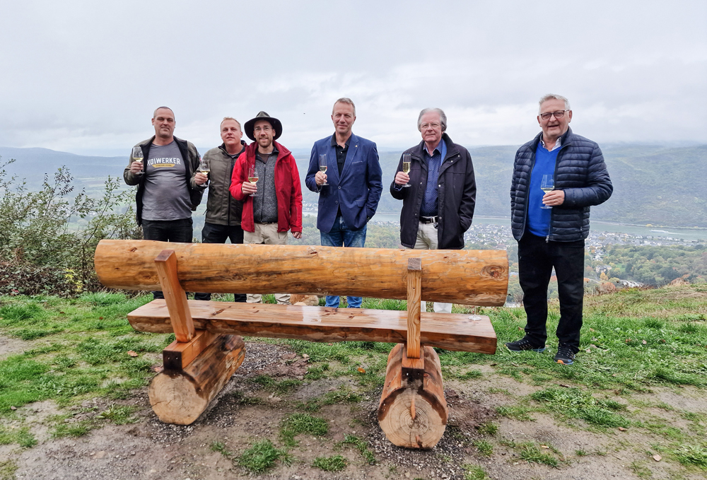 Der VW-Vorsitzende bot an, das Projekt praktisch umzusetzen. Am Donnerstag, dem 11. August 2022, haben Rudolf Kaut, Willi Müller, Michael Spitzley, Berthold Neubauer und Heinz Kähne die Bank in der Gemarkung ,,Bark" (auf halber Strecke zwischen,, Rebenmadonna" und,,Hohem Tisch") einbetoniert. Am Freitag (19. August) fand dann im Beisein des Ersten Beigeordneten der Stadt Boppard, Helmut Schröder