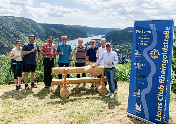 Anlässlich seines 5O-jährigen Bestehens hat sich der Lions Club Rheingoldstraße vorgenommen, in seinen fünf Regionen jeweils eine natürliche Holzbank entlang der Wanderwege im Mittel rheintal aufzustellen.
